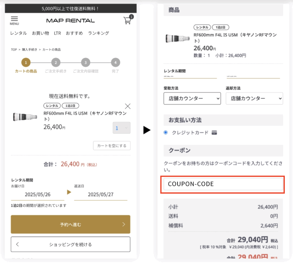 MAP RENTAL(マップレンタル)クーポンの入手・使用方法
