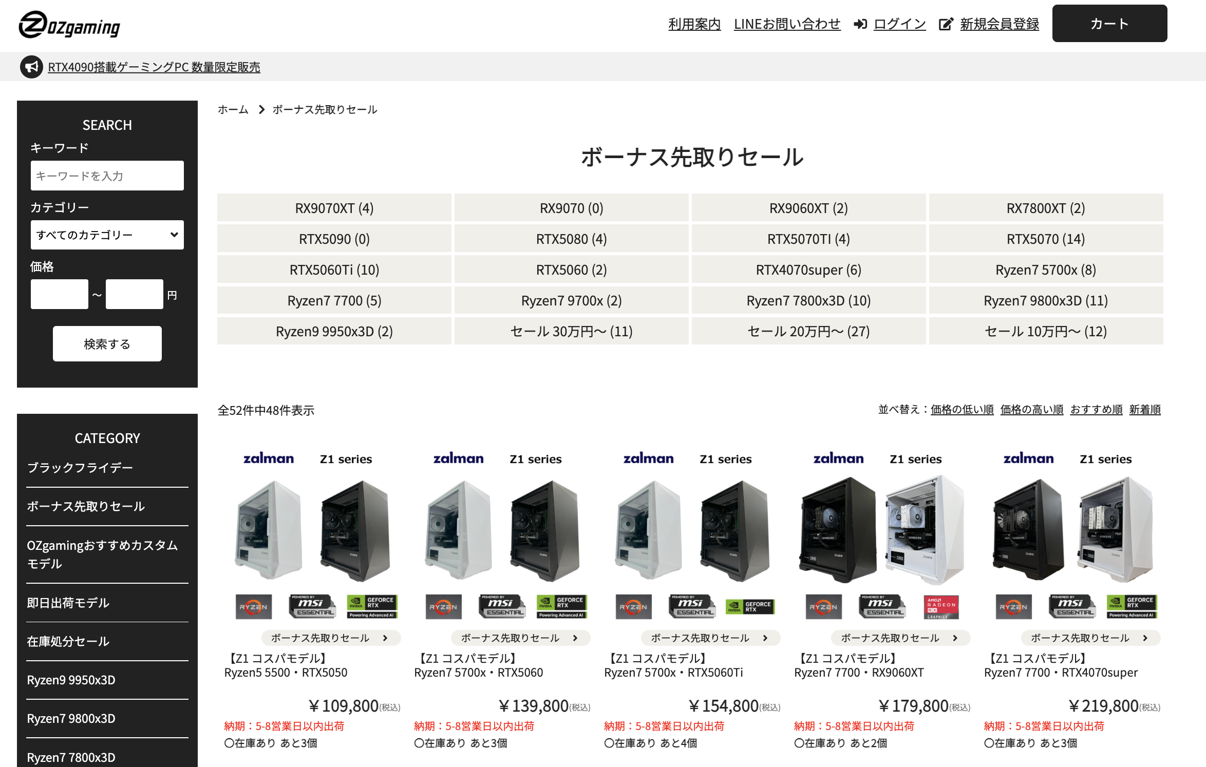 OZ GAMING公式サイトで開催中の主なセール情報(2025年11月時点)