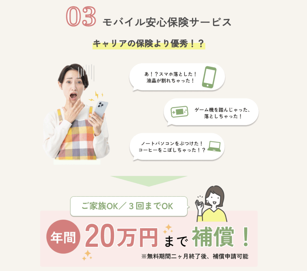 キャリア保険よりコスパが良く、年間最大20万円まで補償されます。