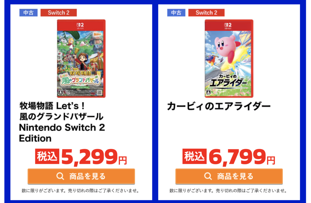 「ゲオオンラインストア」では、Nintendo Switch 2の本体とソフトが販売されています。
