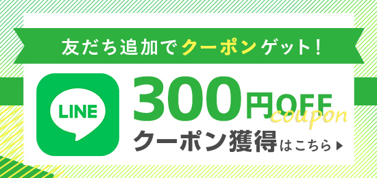 LINEに友だち追加をすると、すぐに使用できる、300円OFFのクーポンがもらえる。