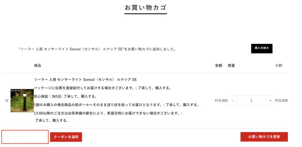 STEP 2:商品をカートに入れて、クーポンコードを入力