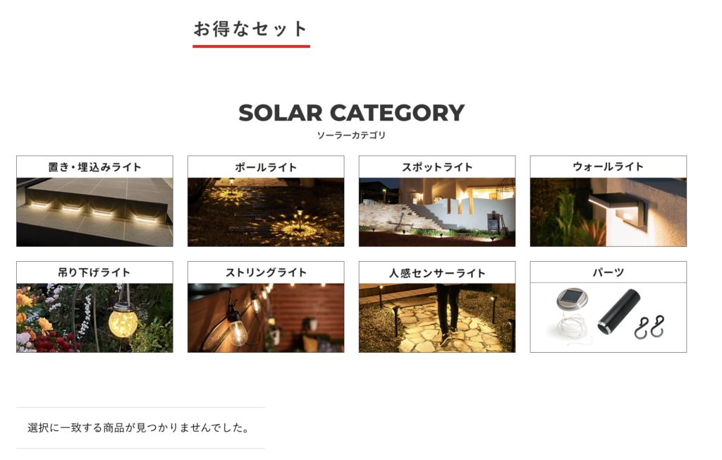 ソーラーライト、ガーデンライトを中心に、ストリングライトや関連パーツ、光る家具・インテリアなどの商品も販売されています。