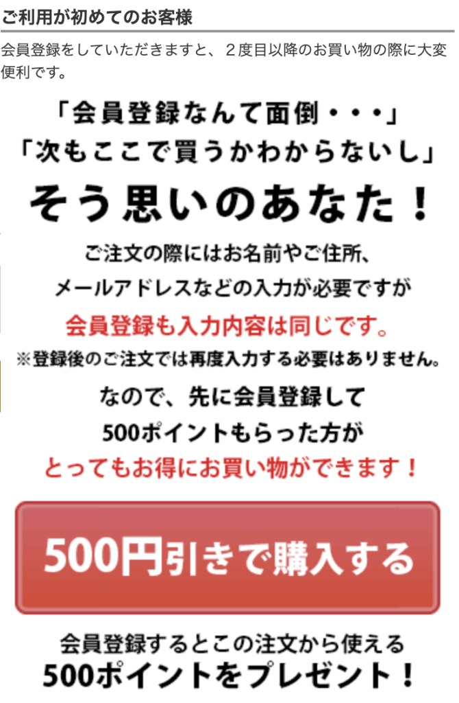 はじめての購入時から500ポイントを使用できるのがありがたいです。
