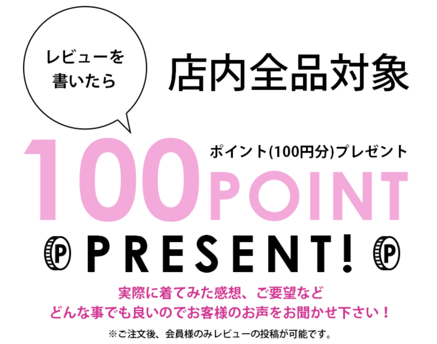 - レビュー投稿で100ポイント|購入後に感想を投稿するともらえます。