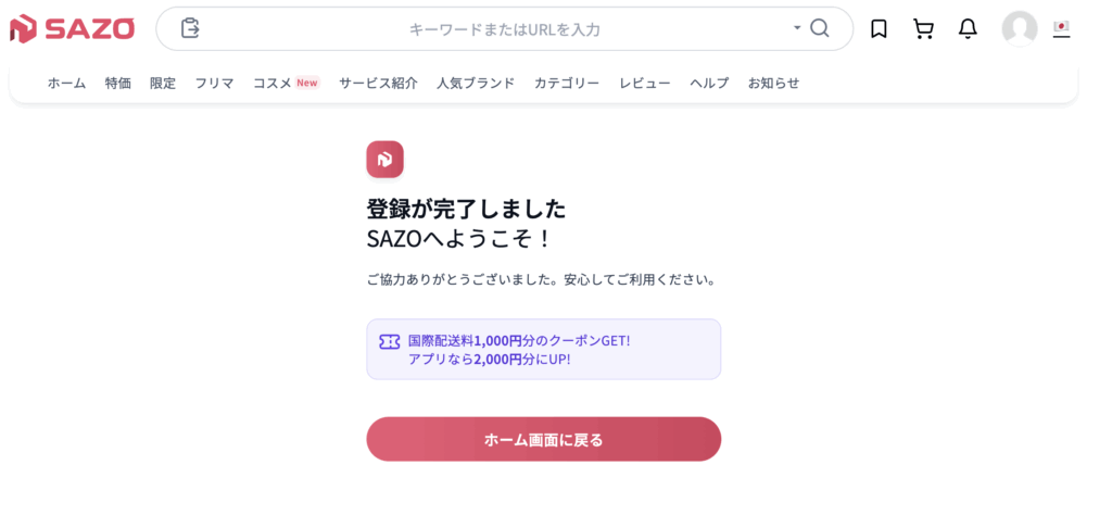 会員登録する際は、アプリから登録すると国際配送料が最大2,000円の送料割引、WEBから登録すると国際配送料が最大1,000円の送料割引なので、アプリから会員登録するのが最もお得なクーポンがもらえます。