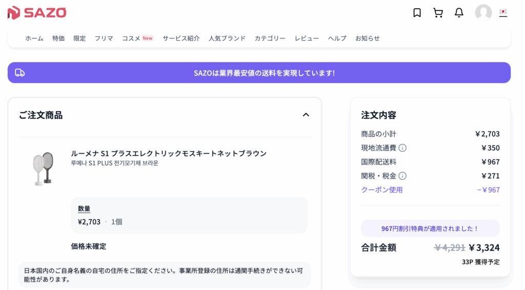 - クーポンは自動で適用されますが、念の為、決済前に割引されているかご確認ください。